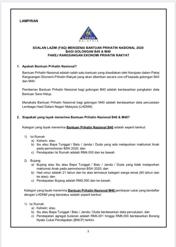 Borang permohonan bantuan prihatin nasional 2020. Bantuan Prihatin Nasional BPN ini akan memberi manfaat kepada hampir seluruh rakyat Malaysia di dalam golongan B40 dan M40. MERUJUK kepada Pakej Rangsangan Ekonomi Prihatin Rakyat PRIHATIN bernilai RM250 bilion yang telah diumumkan oleh YAB Perdana Menteri pada 27 Mac 2020 Kementerian Kewangan ingin menjelaskan mengenai pelaksanaan dan cara mengakses Bantuan Prihatin Nasional. 29052020 Menurut Perutusan Khas Perdana Menteri pada 10 Mei 2020 Permohonan Bantuan Prihatin Nasional akan dilanjutkan sehingga 31 Mei 2020 Selain menghantar emel ke email protected pemohon yang permohonannya tidak diluluskan boleh datang sendiri ke kaunter LHDN untuk membuat rayuan bermula pada Isnin 11 Mei 2020 atau 12 Mei 2020 bagi negeri yang.
